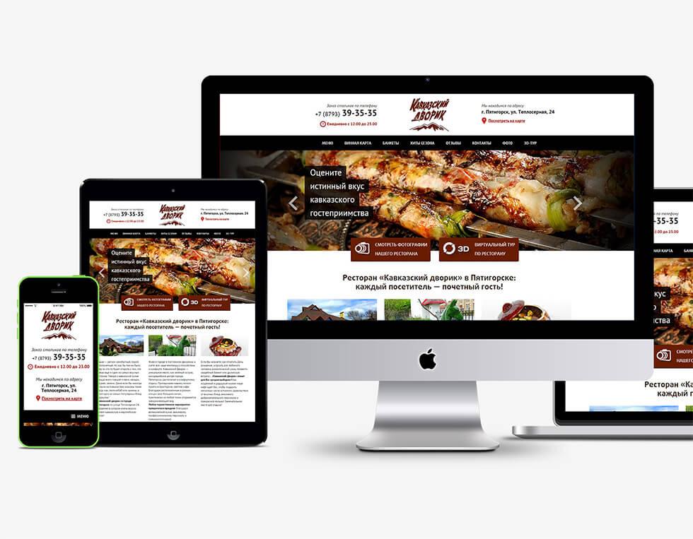 Помимо редкой фишки с актуальным онлайн меню стала изюминка в виде адаптивного дизайна. Аналогов данному ресторану по уровню проработанности дизайна и удобству пользования в регионе на момент создания и запуска просто не существует — это первый в Пятигорске и на КМВ сайт ресторана с адаптивным дизайном! Мы гордимся этим проектом!