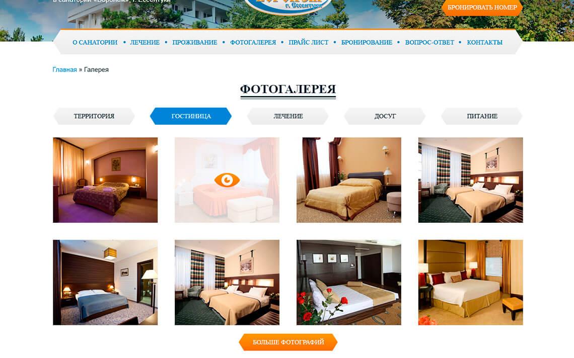 Создание сайта для санатория не является сложной задачей, но требует максимального внимания к деталям и преимуществам конкретного объекта размещения. В результате проделанной работы все понесённые клиентом затраты на создание сайта окупились менее чем за месяц. Посещаемость увеличилась практически вдвое без вложения в рекламу и раскрутку. Достичь такого впечатляющего результата удалось путём грамотной планировки удобной структуры сайта и расположения информации.