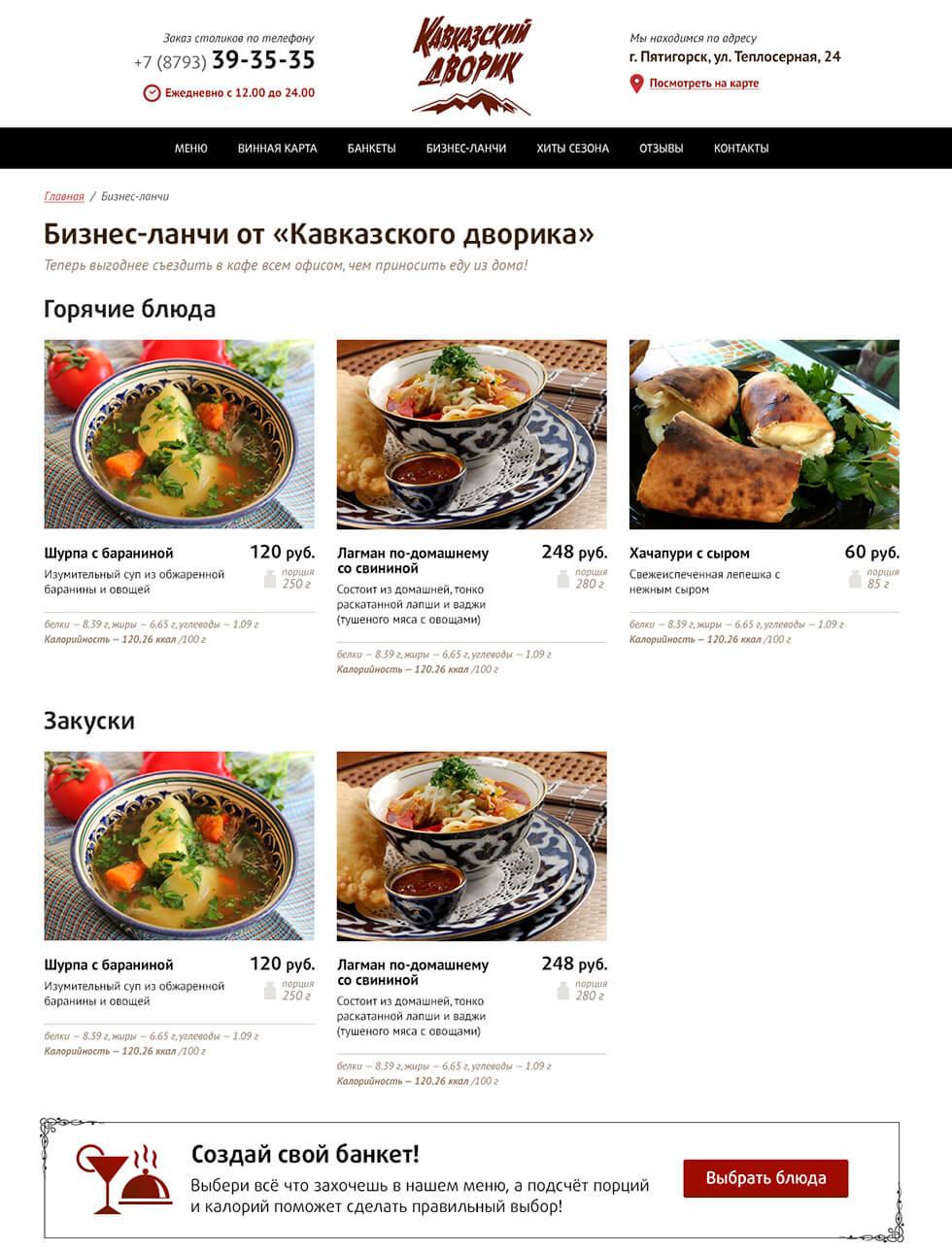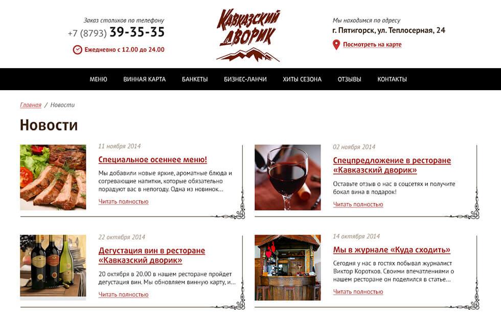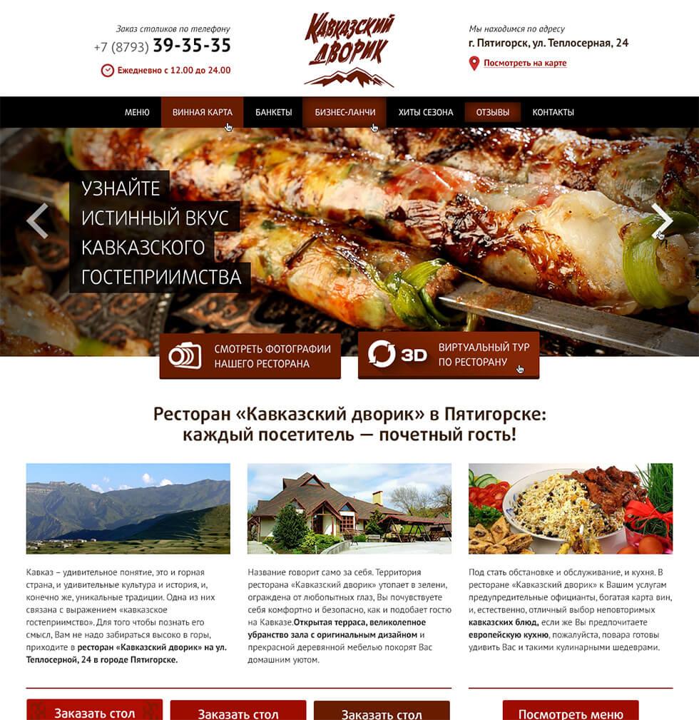Сайт ресторана «Кавказский дворик»