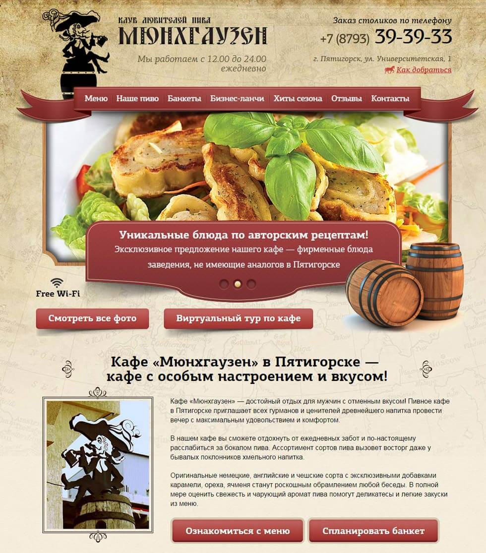 Исключительной особенностью заведения является то, что при планировании банкета посетитель заведения не ограничен какими-то готовыми наборами меню, а волен сам выбрать всё, что ему захочется видеть на своём праздничном столе, из разнообразного меню заведения,— это и легло в основу концепции сайта.