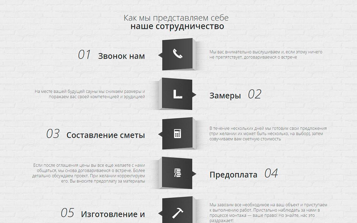 Разработать продающий сайт об услуге проектирования саун по индивидульным чертежам. Сайт должен иметь адаптивный и современный дизайн. Красиво преподносить все преимущества сотрудничества с заказчиком и эффектно преподнести его уникальное портфолио.