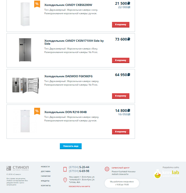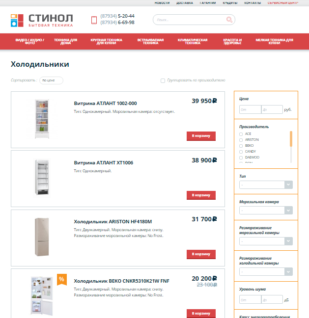 Разработанный сайт предоставляет пользователю возможность изучить весь ассортимент товаров, которыми располагает интернет-магазин «Стинол». Удобный интерфейс, приятный дизайн и грамотная структура помогли сайту занять высокое положение в выдаче по запросу "интернет магазин бытовой техники", даже без продвижения.